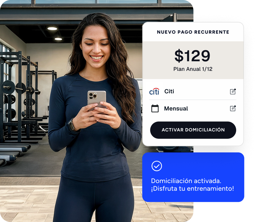 Reduce los costos de la gestión manual de cobros y optimiza tu flujo de efectivo al recibir pagos automáticos y recurrentes de manera sencilla.