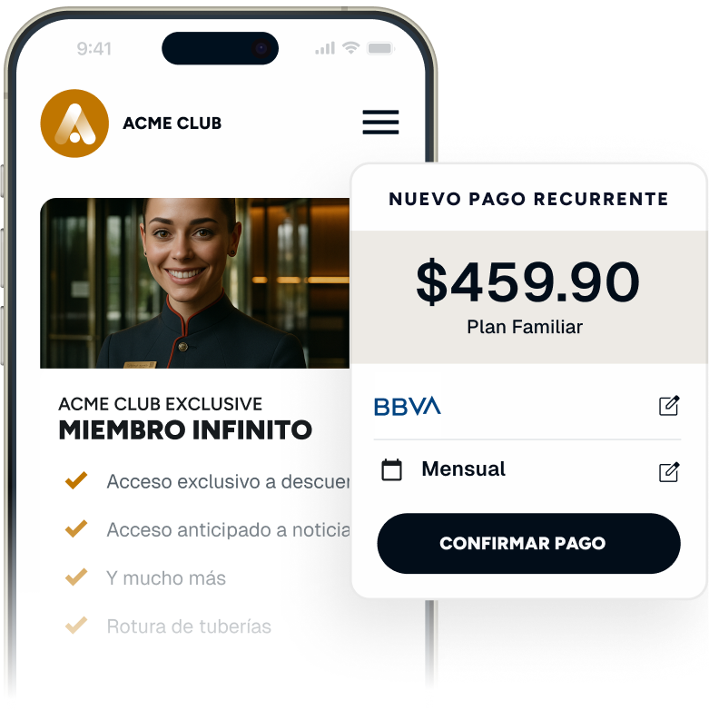 Evita rechazos de pagos por tarjetas vencidas o extraviadas. Con la domiciliación bancaria, reduces el churn involuntario y mantienes a tus suscriptores activos durante más tiempo.