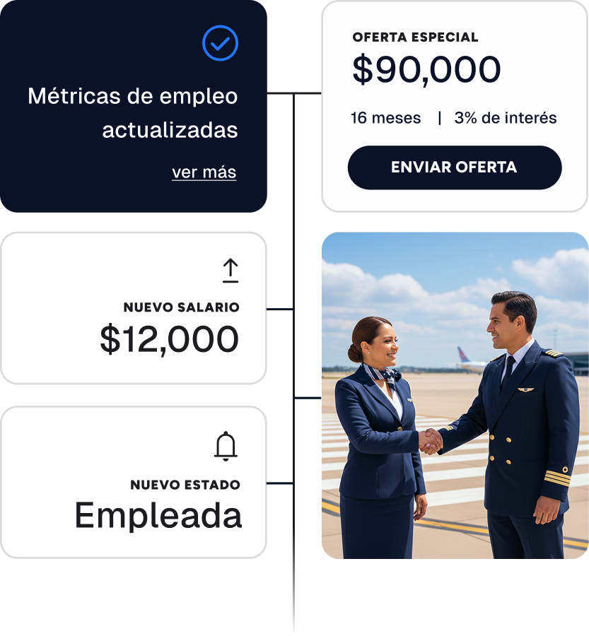 Identifica mejoras laborales en tus clientes para lanzar nuevas ofertas y aumentar las aprobaciones.