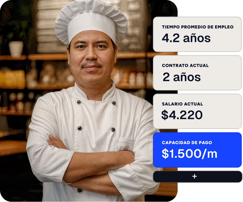 Ve más allá de una foto estática. Analiza la estabilidad laboral, la evolución del salario y las brechas de empleo para predecir la capacidad de pago futura con alta precisión.