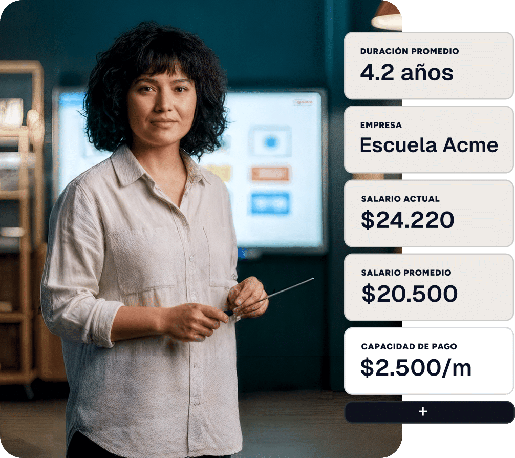 Analiza la estabilidad y evolución salarial para anticipar la capacidad de pago futura. Esta inteligencia te permite ofrecer tasas competitivas a perfiles de bajo riesgo protegiendo tus márgenes operativos.