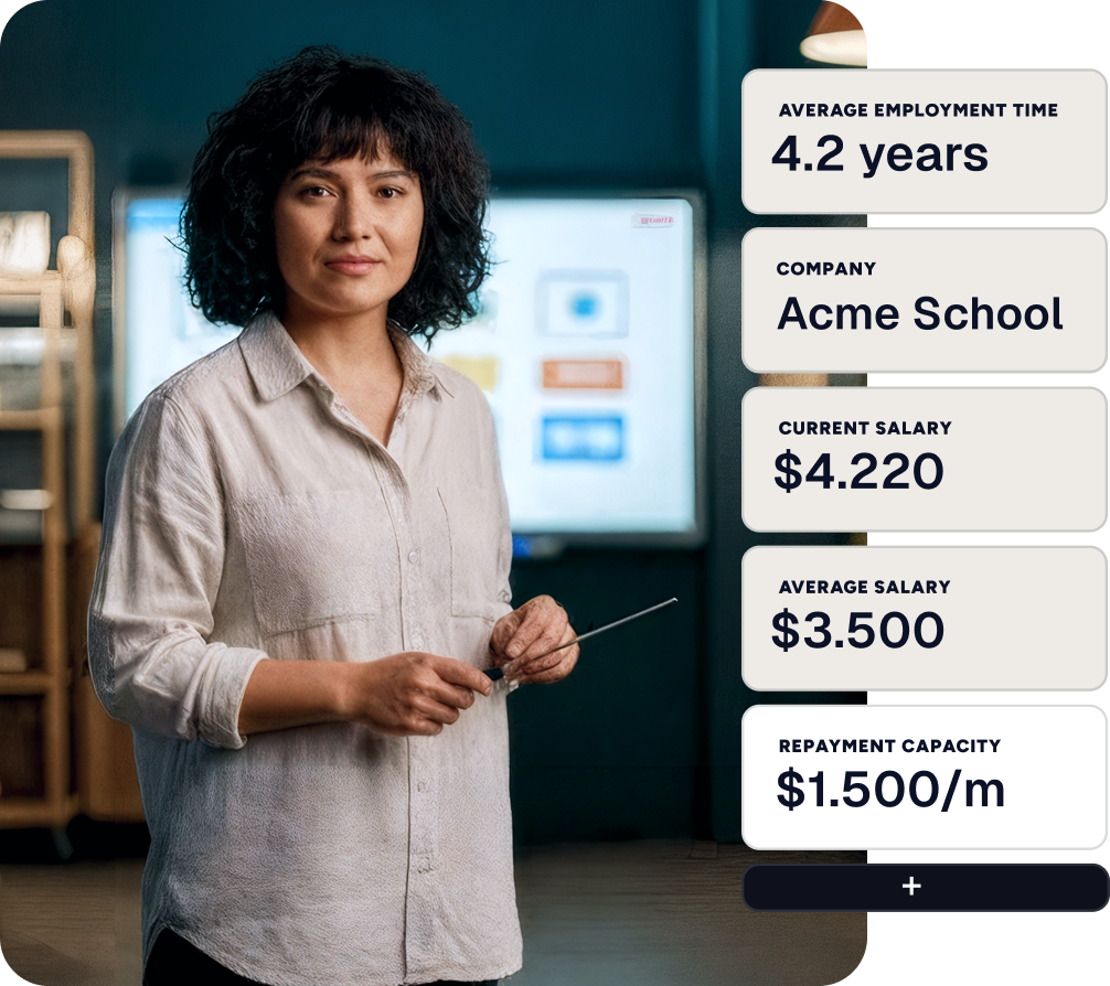 Analyze salary evolution and stability to build models that accurately anticipate future repayment capacity. This predictive intelligence helps you offer competitive proposals while maintaining a low default risk.