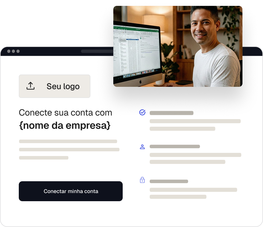 Sem necessidade de programar, integre a Belvo personalizando sua Connect Page com os elementos da sua marca. Quando a página estiver pronta, compartilhe com seus clientes em campanhas segmentadas diretamente no seu CRM para que eles possam conectar suas contas de forma fácil.