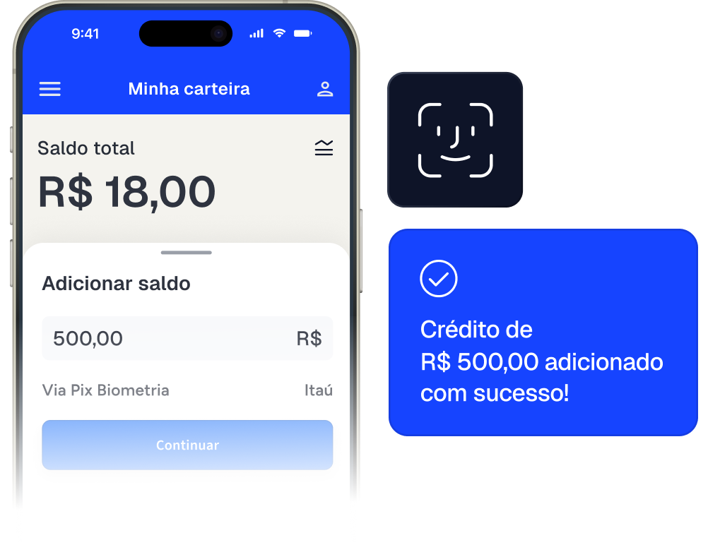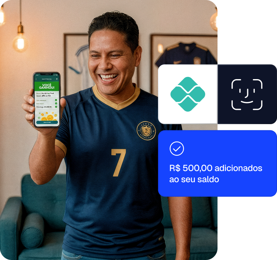 Aumente a conversão e reduza a taxa de desistência, permitindo que os jogadores façam o cadastro e carreguem suas contas em segundos com Pix por Biometria, sem precisar sair da plataforma de apostas.