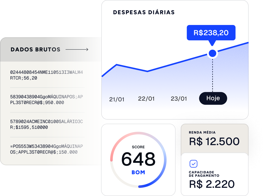 Converta transações em indicadores precisos. Analise a capacidade financeira real para expandir sua carteira de crédito com segurança.