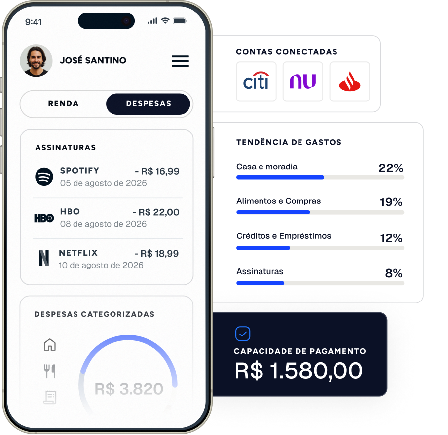 Entenda os hábitos financeiros e padrões de gastos de seus clientes a partir da composição e natureza das transações.